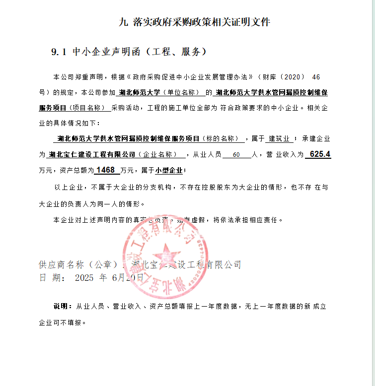 名 称:湖北师范大学供水管网漏损控制维保服务项目